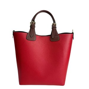 BABY MADDY Two Tone Leather Tote Bag | Red
