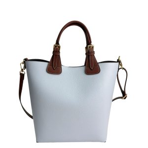 Elevate your everyday style with the BABY MADDY Two Tone Leather Tote Bag, a sophisticated blend of modern design and traditional craftsmanship. Expertly made from premium Dollaro pebble leather, this tote features a striking contrast between its body and dark brown leather handles. The handles are beautifully finished with contrasting white stitching and elegant buckle details, adding a touch of artisanal flair to the structured silhouette.
